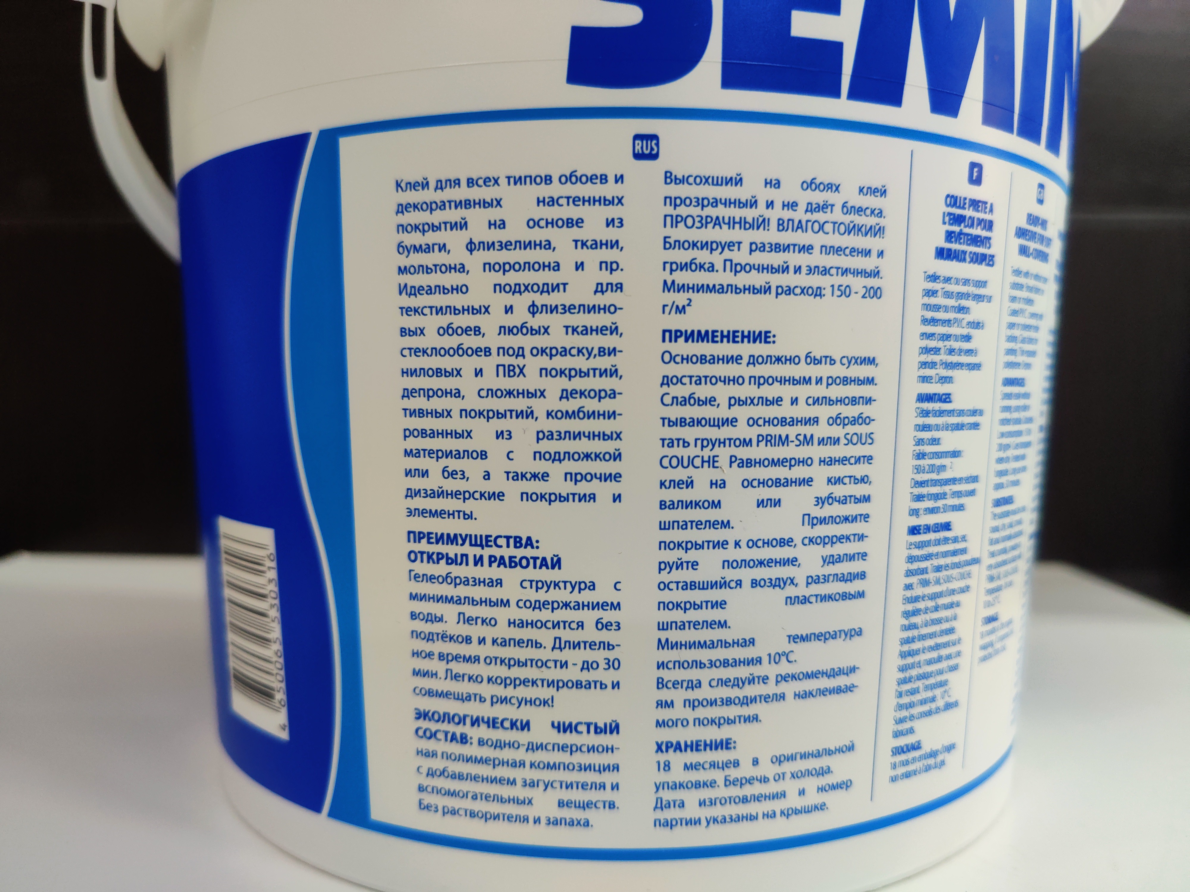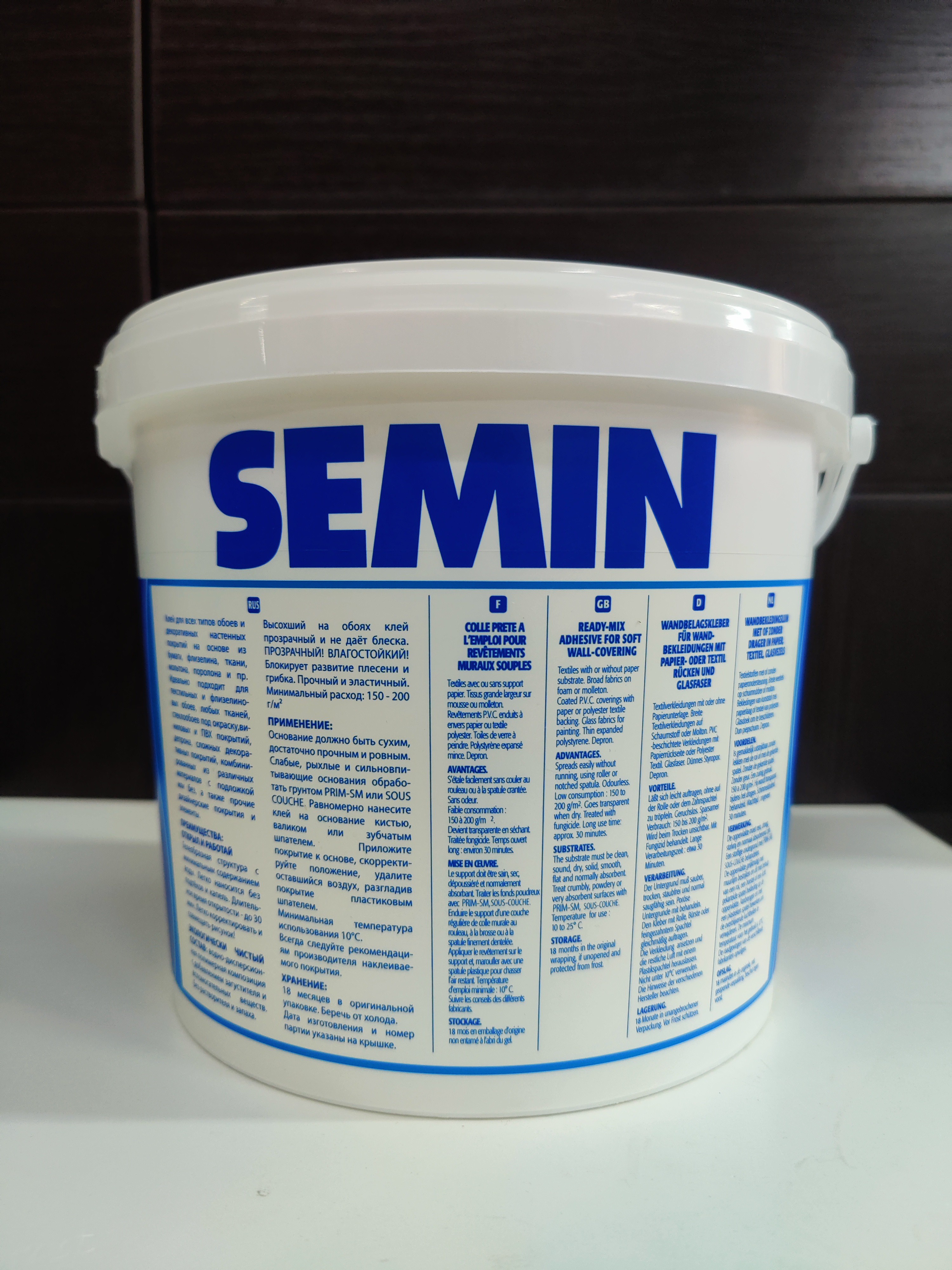 SEMIN SEM-PRO XXL — профессиональный готовый клей для флизелиновых, виниловых и бумажных обоев. Усиленная формула на базе полимеров обеспечивает надежную фиксацию даже тяжёлых полотен.