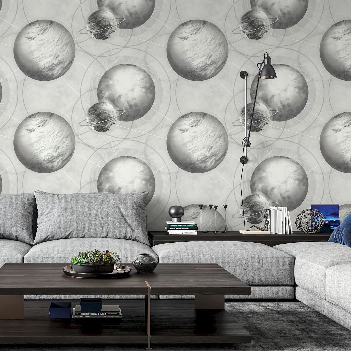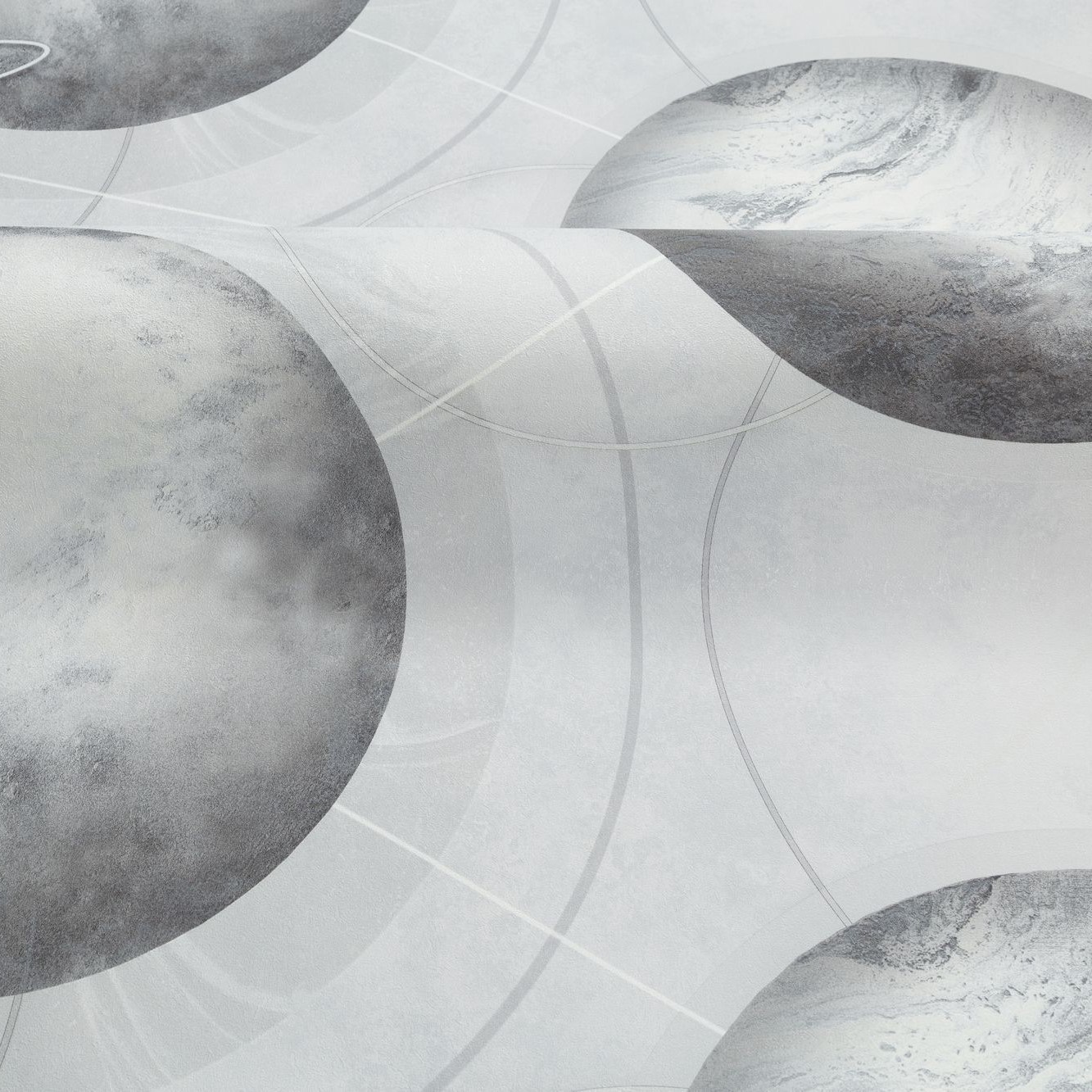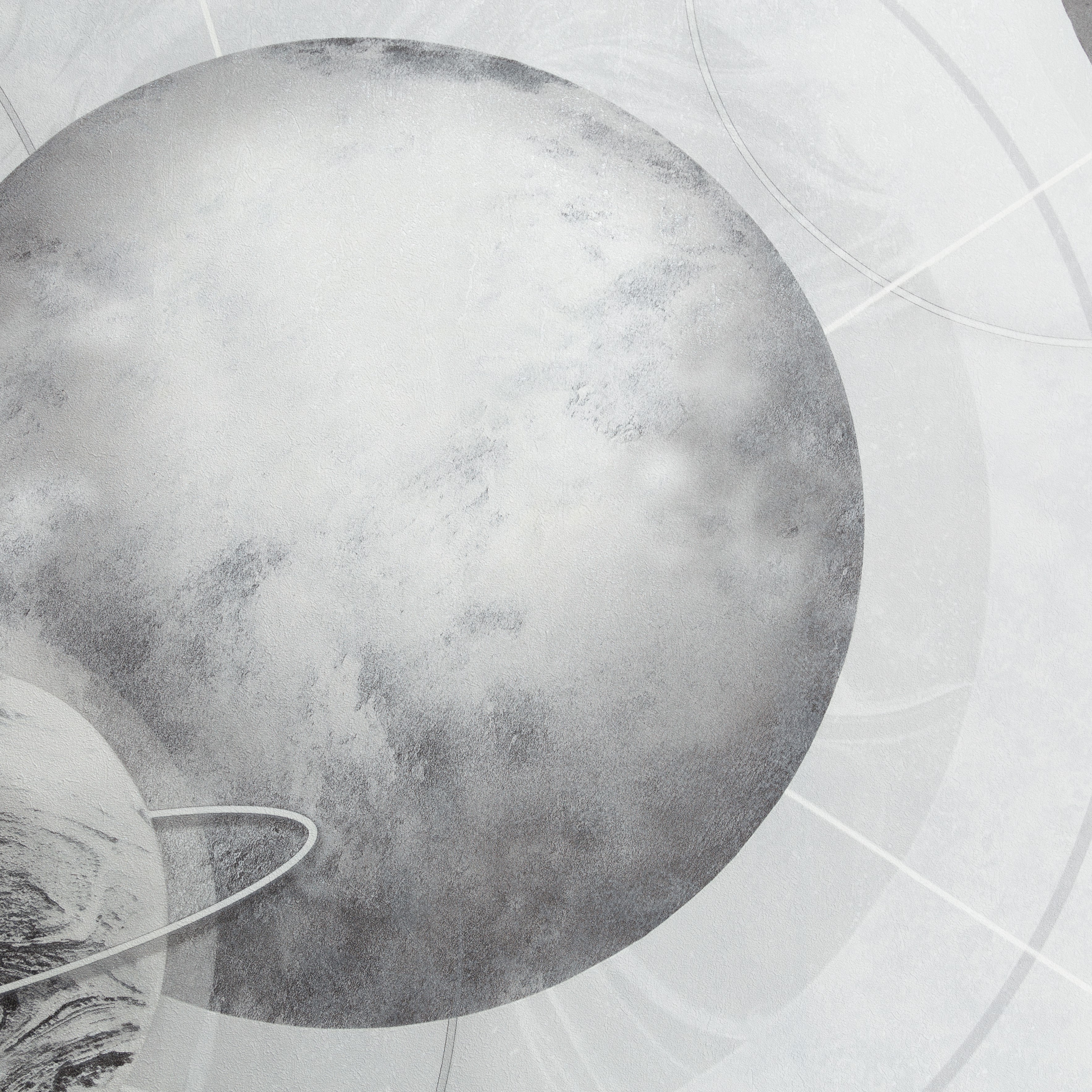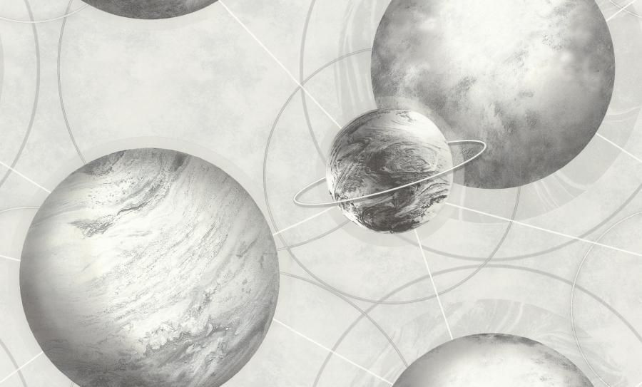 Мотив обоев светло серый, планеты темно-серые