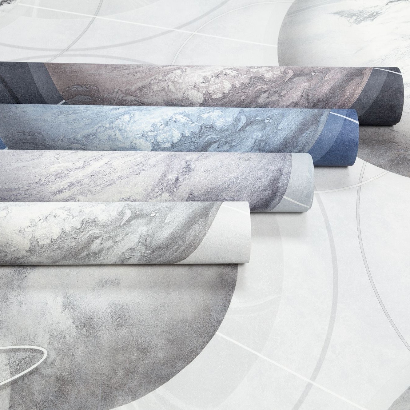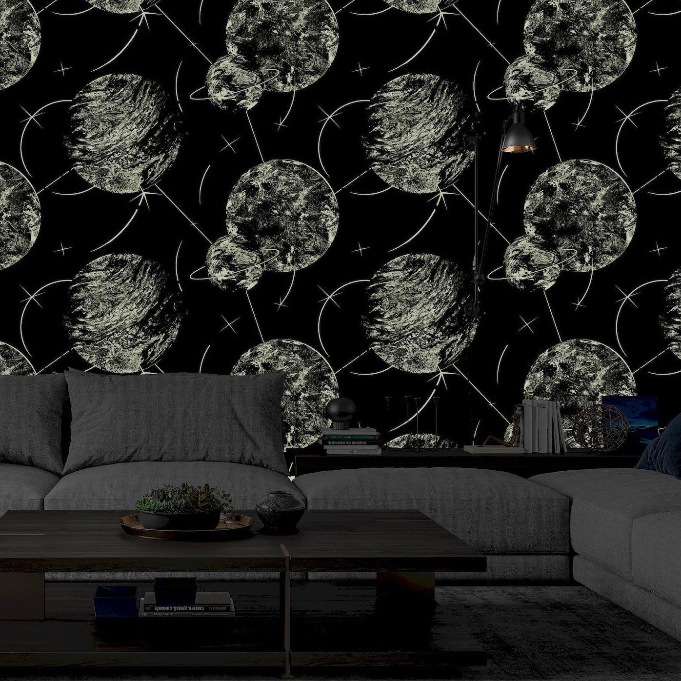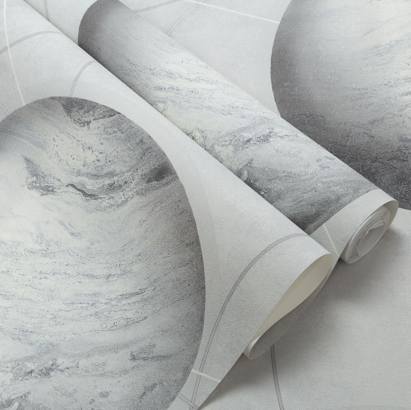 Мотив обоев светло серый, планеты темно-серые
