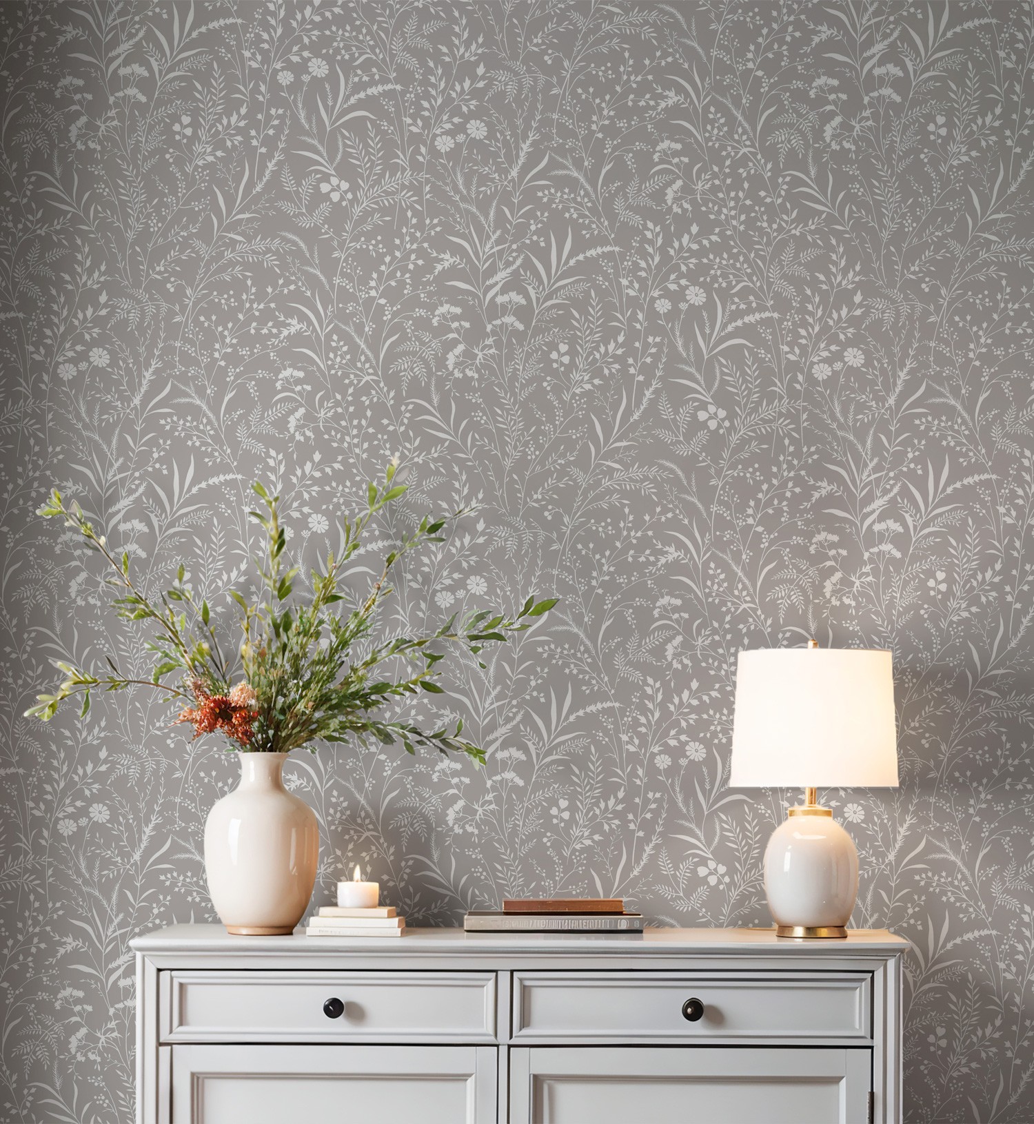 серый с белыми растениями
